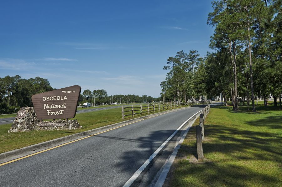 Named in honor of one of Florida's most famous Seminole warriors, the 266,000-acre Osceola National Forest was created by proclamation of President Herbert Hoover in 1931. Prior to that time, forestry for the timbering and turpentine industries played a major role in determining the park's existing landscape. Overcut and heavily burned, the early management of the long-needle pine flatwoods and cypress hardwood swamps led to the USDA Forest Service's present day understanding of using controlled fires and reforestation to manage the park's multiple-use resources. Located about an hour west of Jacksonville, the national forest is literally split by I-10 with park entrances off U.S. 90 as well as several state and county roads.